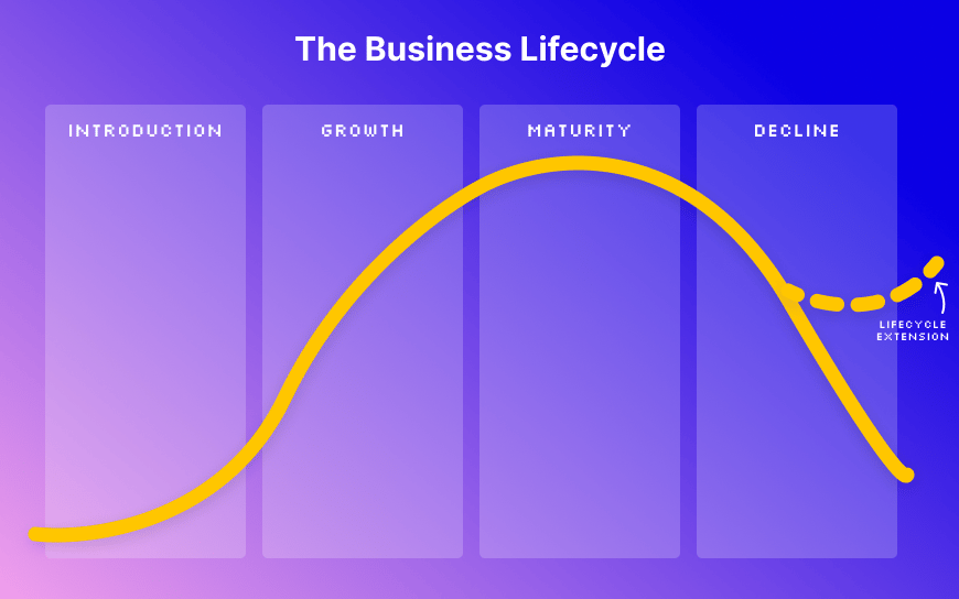 These are the four stages of the business lifecycle – introduction, growth, maturity, and decline. (Some companies will also see a lifecycle expansion, which delays the decline.)